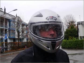 Auf der oberen Bilderfolge kann abgelesen werden, wo etwa die Fahrspur «hätte liegen müssen»: Da wo das linke Hinterrad seine Spur fährt! So lernt man es in der Fahrschule, im Kurventechnik-Kurs. In Tat und Wahrheit fuhr der Fahrschüler die Kurve rechts an, mit relativ guter Schräglage (für die Wetter- und Strassenverhältnisse) und nach den Löchern in der Strasse, verlor das Vorderrad die Haftung und die Maschine mitsamt Schüler und Fahrlehrer schlitterte in Richtung der Mittellinie, wo sie zum Stehen kam... |