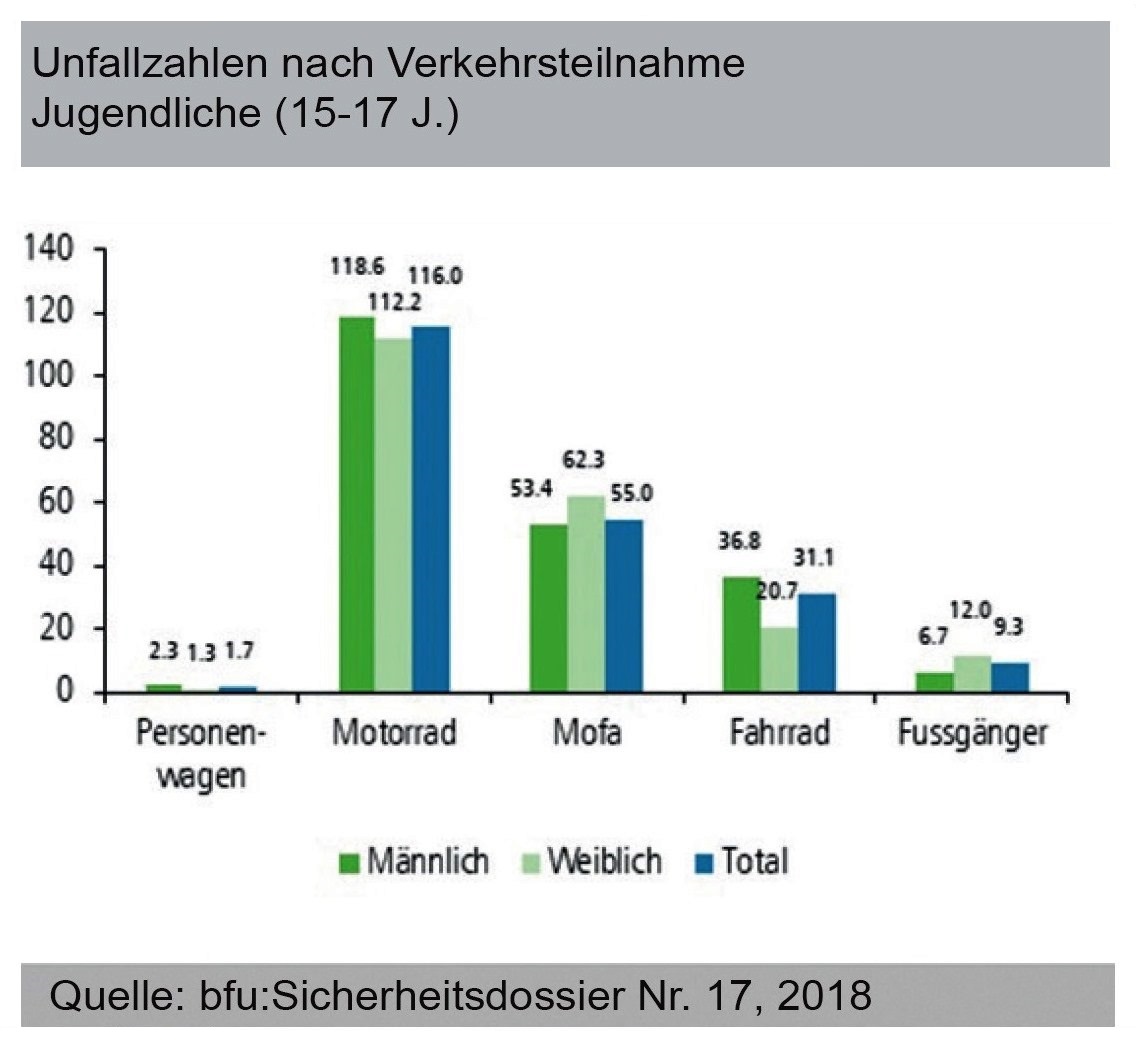 Die häufigste Unfallursache bei den 15-17-Jährigen ist die Verkehrsteilnahme auf dem Motorrad/Roller - dies dürfte in der Zukunft (leider) noch viel mehr zutreffen, wie der Blick ins Ausland zeigt! |