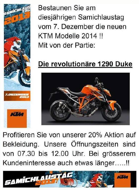 Mehr über den Pfeil oben rechts «Weiter» zu «Wieder-Eröffnung 2wheel-tec 24./25.Aug. 2013» |
