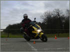 In der Kurz-Repetition (Klettern, Spurgasse, Slalom und Bremsübung) wurden gute Ergebnisse erzielt, einzig beim Slalom haperte es noch etwas... Anschliessend kamen die «Turnübungen», wovon es nur einen Film gibt! Echter Härtetest für Andreas auf dem Derbi-Töff. Die trockene Sitzgarnitur diente dem kalten Picknick, bei heissem Tee wurde «Wärme getankt» bevor es zu den Bremsübungen auf dem Kiesplatz ging: Bremsen mit dem Hinterrad, Vorderradbremsübungen und schliesslich, von Ambros gut vorgetragen, mit beiden Bremsen. |