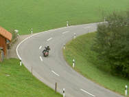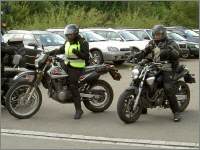 Nach dem Mittagessen mit anschliessender Theorie machten wir uns auf die Umsetzung der Theorie zum Thema Gegenlenken und Lenktechniken. Dies gab auch die Möglichkeit, mal die Maschine zu tauschen: Valentine ist ein Enduro-Fan und wollte mal eine echte Enduro fahren, wie sie Sepp hatte. Für Sepp war es eine Möglichkeit, mal zu schauen, wie sich ein Strassen-Töff bewegt. Gewichtsmässig kam es beinahe auf dasselbe heraus.