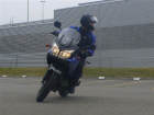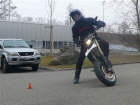 Das ist halt, wenn man etwas ausprobiert, bevor man es gelernt hat: Eine Maschine steht (siehe Bilder unten!) von alleine, wenn man es richtig macht - wenigstens für einen (ganz) kurzen Moment! Schmerzen tut es noch mehr, wenn die Maschine noch keine 100 Kilometer auf dem Tacho hat... |
