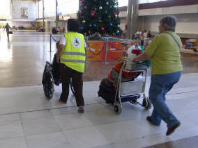 Also geschah es: Kaum zurück, reservierte sie die Flüge, am 19.Nov. mit Edelweiss hinzufliegen, um am 10.Dez, zurückzukehren. Dieser Rückflug wurde dann etwas ganz besonderes. Wie Sigrid in diesem Jahr, feierte eine liebe Freundin von ihr, Silvia Bruno am 29.April in Volketswil ihren «50.Geburtstag». Da Sigrid im Rollstuhl vorzeitig ins Flugzeug gebracht wurde, standen wir zusammen mit 2 anderen Rollstuhl-Fahrern vor dem Einstieg, als uns eine der Airhostessen freudig begrüsste: Wir waren ganz paff, und im Gegensatz zu Sigrid, die die Situation sofort erkannte, musste ich erst in meinem Memory klauben: Natürlich, Nancy, die Tochter Silvias, hatte mit ihrem Bruder die Geburtstagsgesellschaft mit einem Scetch über Mamas Leben unterhalten. Wie haben wir an dem Abend gelacht! Und Siggi hat noch fleissig getanzt, WAHNSINN dieser Zufall! Eigenlich hätte Nancy einen Langstreckenflug nach Florida eingeteilt gehabt, da wurde sie kurzfristig umgeleitet. Auch für sie war es die letzte Begegnung mit Siggi! |