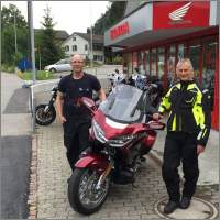 Als ich mit Ivan Eberle, dem Nachfolger von Hans Keller in Bauma, der vor ein paar Jahren das Geschäft an seinen langjährigen Mechaniker übergeben hat, in Most auf der Rennstrecke war, fragte ich ihn, ob er eine neue GoldWing zu mieten hätte. Ich plante über die Tage, die wegen der abgesagten Stella-Tour frei geworden waren, mit meiner Freundin Karin eine Österreich-Italien-Tour zu unternehmen und wollte das mit einer Mietmaschine tun, um weitere Erfahrungen zu sammeln. Es hätte auch eine Honda Africa Twin oder eine KTM Adventure sein können, aber jetzt, wo nach 17 Jahren Honda endlich die neue GoldWing auf den Markt gebracht hat, stand natürlich diese Maschine im Vordergrund. |