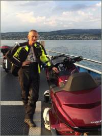 Karin konnte es kaum erwarten, aufzusteigen und loszufahren! Wir fuhren nach Horgen auf die Fähre, um über den See zu setzen. Das hat immer einen Hauch von Ferien… Das gab ihr Zeit, die Maschine etwas näher anzuschauen, sie war begeistert und auch andere Leute sahen sich den Töff genauer an. Wir verliessen die Fähre in Meilen und fuhren die schöne Kurvenstrecke zum Pfannenstiel hoch. Da die Strasse in Richtung Oetwil gesperrt war, landeten wir in den schönen Kehren beim Widenbad oberhalb von Männedorf. |