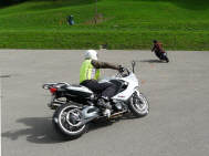Nach dem Zahlen waren wir dann bereit für das Nachmittagsprogramm, wo wir noch ein bisschen «Motorradfahren» spielen: Das Hauptziel, eine saubere Kurvenlinie, geschwindigkeitsmässig richtig gefahren und wieder am richtigen Ort aus der Kurve heraus gekommen, muss vor dem Mittagessen erreicht werden. So machten wir uns also auf den Weg, noch viel auszuprobieren, ganz am Anfang die Umsetzung der Gegenlenk-Technik. Einmal mehr war der AHA-Effekt gross, aber am vorgesehenen richtigen Platz.