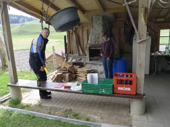 Es ist bereits ein Jahr «Corona» und wir warten immer noch auf die Normalität: So stellte das «Nicht-offen-sein» der Beizen uns vor schwierige Hindernisse. Roman, der Sternen-Wirt musste sich bei der Gemeinde erkundigen, ob er mir das Sääli als Schulraum zur Verfügung stellen darf. Und für den Zmittag fanden wir Unterschlupf im «Lindenhof» in Oetwil, wo uns Roli, der Kurventechnik-Instruktor auf Bedarf, uns den Garten und den Grill in seiner Pergola benützen liess. Eine gute Freundin der Familie, Alexandra sprang ein, da weder Roli noch Manuela zugegen waren. Es war ja auch Ostersamstag, also keine Selbstverständlichkeit!