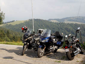 Bei dieser Gelegenheit hatte ich nochmals meine Aspencade bei Sebi geholt: Ich wollte mich (zusammen mit Karin) noch verabschieden, bevor ich sie ausser Betrieb nehme! Eine Reparatur (sie verliert Öl) käme zu teuer ... Mit 34 1/2 Jahren im Dienst und mehr als 266'000 Kilometer kann ich mich nicht beklagen. Sie durfte bei Honda-Keller warten, bis ich mit der neuen Gold Wing Tour von der Zages-Tour zurückkam. Dabei konnte ich auch noch erste Eindrücke mit der neuen 1250er-GS sammeln, indem ich mit Dimitri zeitweise den Töff tauschte. |