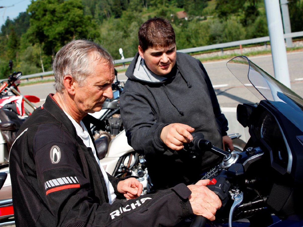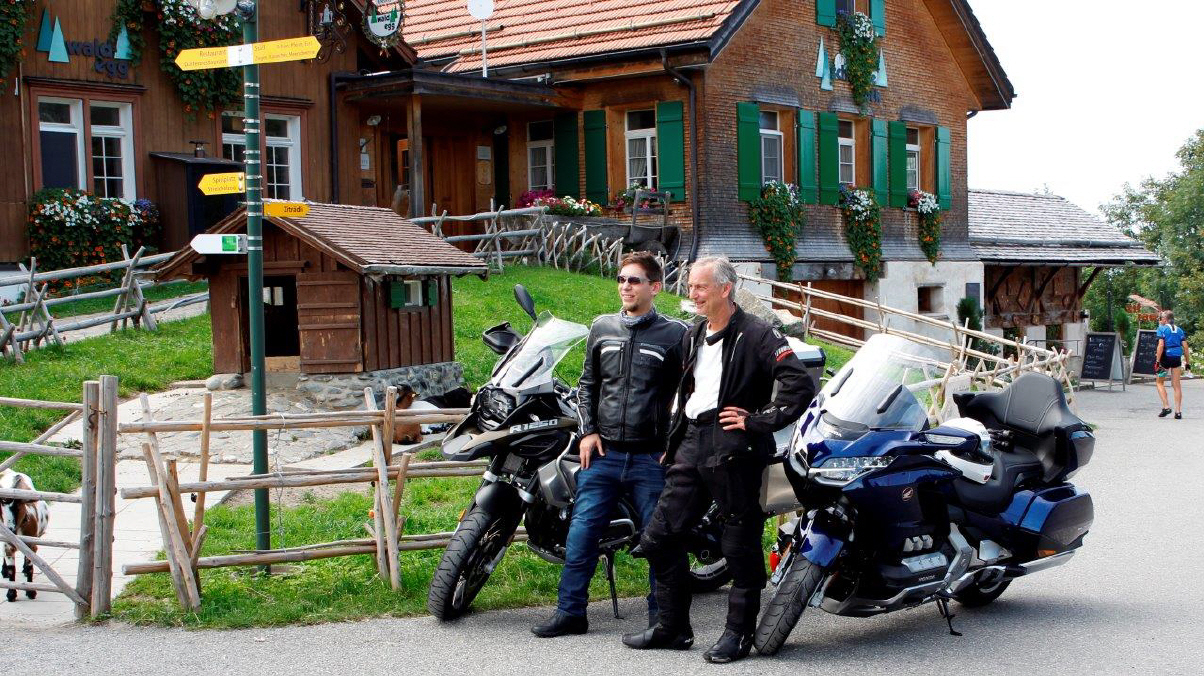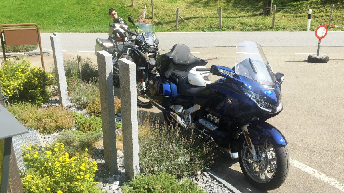 Am Mittwoch, 28.August galt es nun ernst: Dimitri bekam von BMW Schweiz als Presse-Mann eine neue 1250er GS Adventure zur Verfügung gestellt. Ich leistete mir wieder einmal eine Ausfahrt mit der neuen 1800er Gold Wing Tour, die ich mir bei Ivan von «Honda-Keller» in Bauma auslieh. |