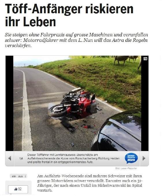 2020: Meldung betr. Unfälle mit L-Fahrern häuften sich, mehr dazu hier
