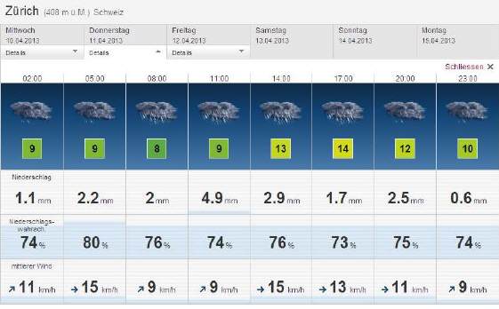 Detail-Aussichten ZH für Donnerstag, 11.Apr. 2013 |