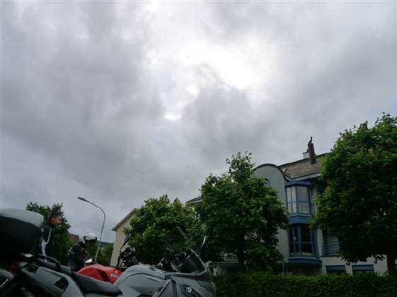Ja, die Wetteraussichten (wen wundert's?) waren auch für diesen Donnerstag miserabel und so war ich nicht überrascht, dass neben meinem Tourguide Arthur nur ein einziger Teilnehmer (mein Fahrschüler vom DO-Morgen!) auftauchte. Am grauen Himmel konnte wenigstens noch eine helle Wolke entdecken, die eindeutig von der Sonne (über den Wolken) angestrahlt wurde ... Kurz nach 7 Uhr, als niemand mehr eintraf, starteten wir zu dritt. |
