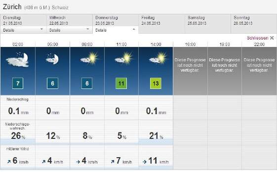 Detail-Aussichten ZH für Donnerstag, 23. Mai 2013 |