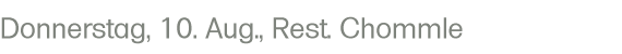 Wenn ich in diese Richtung fahre, so habe ich eine herrliche Route herausgefunden, die ich alljährlich anlässlich der Anfahrt zur «Stella» fahre. So konnte ich auch die 2.Führung an Peter Doering delegieren, der schon viele Male mitgefahren ist. Von der Waldegg fahren wir über Birmensdorf nach Oberlieli, wo es über Oberwil, Unterlunkhofen, Rottenschwil, Aristau-Birri nach Muri geht. Da steigt es an, über Müswangen erreichen wir Hitzkirch, wo wir eine herrliche Auffahrt Richtung Beromünster herausgefunden haben: Sie führt über Richisee nach Herlisberg, wo man eine schöne Aussicht auf den Baldeggersee bis hin zum Uetliberg geniesst. Von da ist es einen Katzensprung hinunter nach dem schönen Flecken Beromünster mit den berühmten Sendetürmen, die das Landschaftsbild dominieren und auf direktem Weg Richtung Sursee erreichen wir «Chommle». |