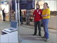 Fast wurden wir fertig bis um 10.00 Uhr, einzig die Preise mussten noch angeschrieben werden... Kurz nachher gings los, auf allen Kanälen, Milly in der Beratung und im Verkauf, Christian half aus bis ich zurück kam und nachmittags traf auch Sigrid ein. Roli Schneider hatte «frisch ab Presse» die neue Ausrüstung mitgebracht, nach dem weissen nun ein rotes Hemd mit welchem wir uns am Stand präsentieren.