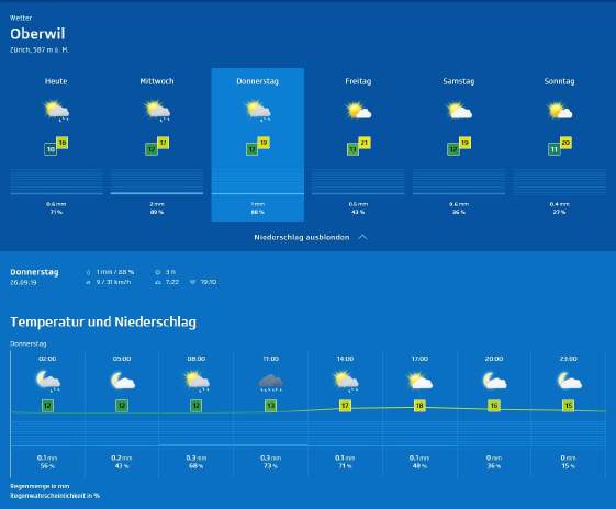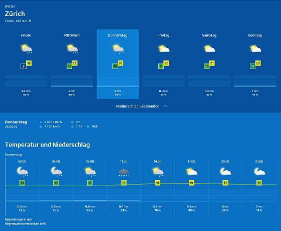 Züri-Wätter-Details für Donnerstag, 26.Sept. 2019 |