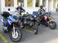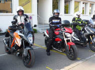 Diesmal durften wir für ein Mal bestimmt mit sicherem Wetter ohne Regen, aber immer noch kühlen Temperaturen starten. Wir wählten eine Strecke, die für alle, auch Gregor mit seiner 125er, gut zu bewältigen war, einer Rundfahrt um den Irchel. Ich starte jeweils über Wallisellen, Kloten und Gerlisberg, um möglichst schnell dem Feierabendverkehr zu entkommen. Das Eigental ist nun wieder befahrbar, aber mit einer 60 km/h-Beschränkung belegt: Gähnen, gähnen ist angesagt - schade für die vielen schönen Kurven. Nach Pfungen erklommen wir die Weinberge und warfen aus der Höhe einen schönen Blick zurück auf Winterthur, mit der Kyburg im Hintergrund. Vorbei am Irchelturm landeten wir über Buch und Berg am Irchel auf der kurvenreichen Strecke, wo wir kurz vor Teufen, unserem Fahrziel, einen Halt einlegten , um hinunter auf den Rhein zu schauen. |