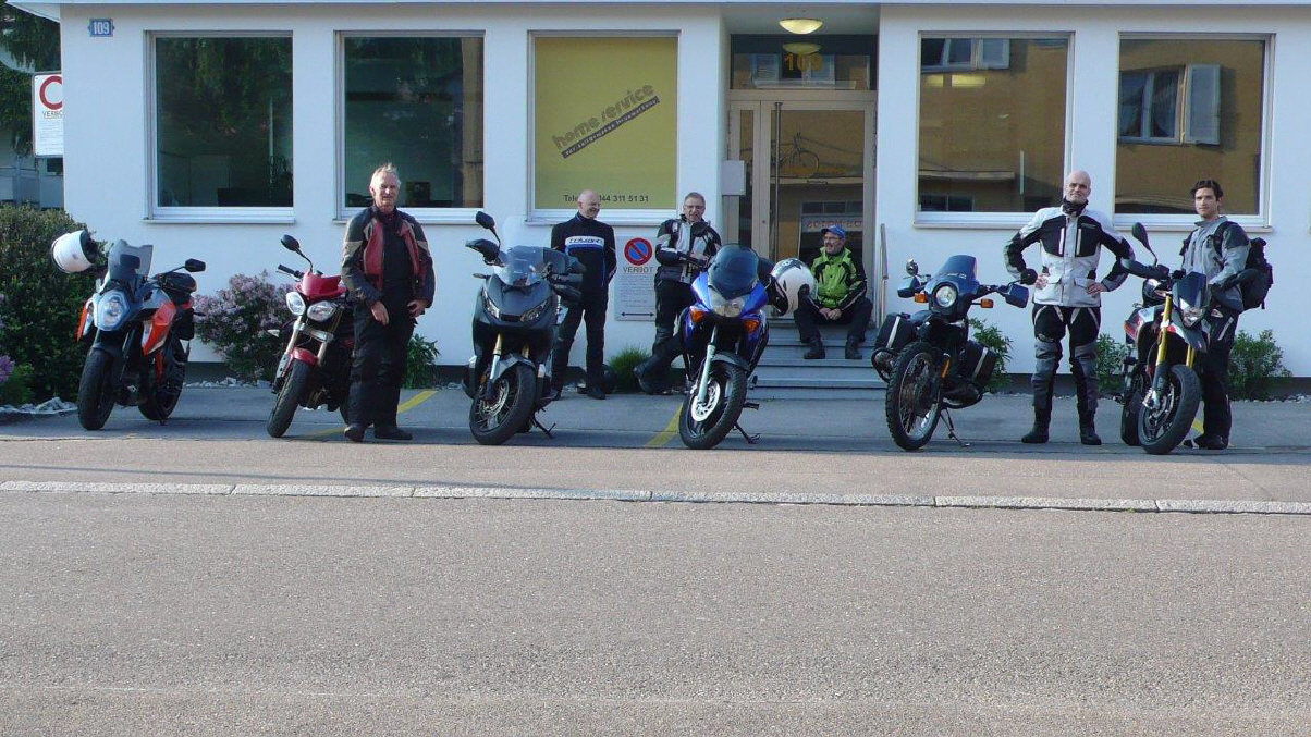 Trotz dem unsicheren Wetter anlässlich der vierten DO-Ausfahrt vom 9.Mai, starteten wir zu viert auf die Ausfahrt: Ich fuhr voraus und schaute immer wieder zum Himmel, um möglichst eine regenlose Fahrt zu planen, was mir bis zum Ziel in Elgg gelang: Während Arthur aufgrund des Wetters gleich die Rückfahrt in Angriff nahm und Marco zurückführte, kehrten Renato und ich bei Köbi, dem töfffahrenden Wirt im Rest. Eintracht in Elgg ein. Auf der Rückfahrt kamen wir erst in der Region Zürich in einen leichten Nieselregen - nochmals Glück gehabt!