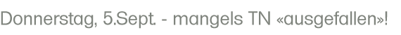 Wie immer bei unsicherer Wetterlage gibt es nur einen Treffpunkt, um 19.00 Uhr an der Tramstrasse 109! |