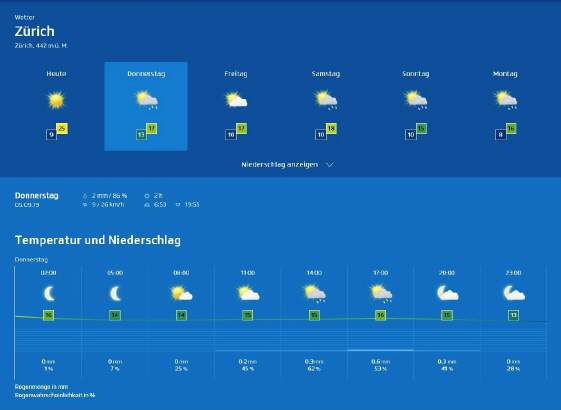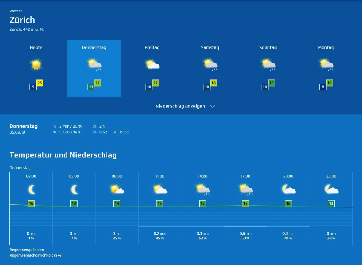 Züri-Wätter-Details für Donnerstag, 5.Sept. 2019 |
