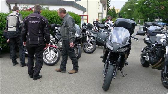 Deshalb beschloss ich, keine weiteren Umwege mehr zu fahren und wir landeten über Goldingen direkt im Bannholz, wo wir um 20.20 Uhr als Erste eintrafen. Urs mit dem Roller verabschiedete sich gleich wieder, um noch bei Tageshelle zurückzufahren. Wir aber flüchteten uns ins Restaurant. |