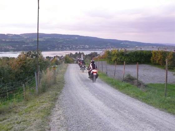 Die Ausfahrt zum Untersee gehört zum Standard-Programm, fast ein jeder weiss auch, dass es dabei nicht ohne Kiesstrasse abgeht: Da «die Landung», die Abfahrt hinunter zum Untersee gleicht einem Landeanflug, mit einer unvergleichbaren Aussicht belohnt wird, gibt es keinen Protest bei den Teilnehmern. Nach der Besammlung an der Tramstrasse geht es erst mal nach Winterthur, wo wir auf Oliver treffen. Dort teilen wir die Gruppe neu auf und dann geht es weiter in Richtung Norden. Diesmal habe ich zwar den Weg auf Anhieb gefunden, aber nicht eigentlich auf der geplanten Strecke. Da wir aber deshalb mehr Kilometer auf Asphalt zurücklegten, war mir niemand böse. Ich glaube, nur Oliver kennt die richtige Strecke, da er vor Jahren schon «stundenlang» umhergeirrt, schlussendlich den Ausgang in Richtung Mammern gefunden hat. |