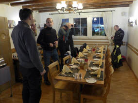 Da einige direkt nach der Ankunft umdrehten, ein paar andere nur etwas tranken, war der Tisch (ich weiss die genaue Anzahl jeweils nicht im voraus) zu üppig gedeckt. Da wir schon sehr früh da waren, der Service hervorragend klappte, starteten wir auch entsprechend früh wieder und ich war bereits um 22 Uhr zurück im Geschäft, wo ich noch die Homepage veröffentlichen musste. |