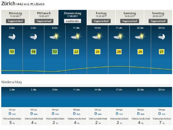 Züri-Wätter im Detail für Donnerstag, 17.Aug. 2017