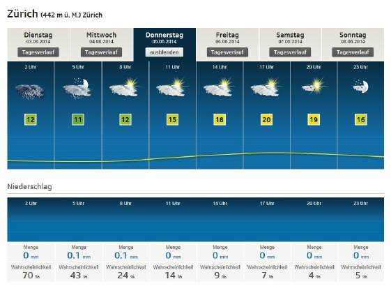 Detail-Aussichten ZH für Donnerstag, 5.Juni 2014 |
