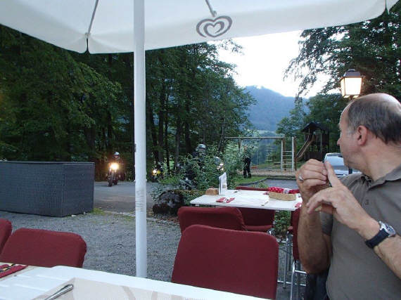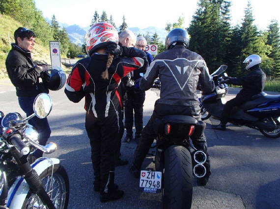 Um halb 6 Uhr traf Oliver an der Tramstrasse ein. Er hatte Ferien und konnte sich deshalb auf diesen Sonderjob, führen der L-Fahrer über den Pragelpass, einlassen. Wir besprachen die verschiedenen Varianten anzufahren, noch weniger Bock als durch die Stadt Zürich zu fahren hatte er für den Seedamm in Rapperswil. So entschloss er sich, im Gegensatz zu Arthur, die Variante Stadtdurchfahrt Zürich. Ich machte mich für den Start um 19 Uhr bereit. Daniel war der Einzige, der an der Tramstrasse auftauchte. So fuhren wir zu zweit los, um in der Waldegg nochmals zu halten. Dort wartete Toni mit seiner heissen Honda CB1000R. Nach fünf Minuten Wartezeit für allenfalls verspätete Teilnehmer, nahmen wir dann die gewohnte «Direttissima» in Angriff, über Hausen am Albis nach Sihlbrugg (2 Baustellen), über Neuheim, Edlibach nach Unterägeri und dem Ägerisee entlang bis nach Sattel (3 Baustellen), dann die zügige Strasse hinunter nach Schwyz, wo wir den Eingang des Muothatals, verbarrikadiert mit 4 weiteren Baustellen erreichten. Das Muothatal zeigte an den Hängen noch etwas Sonnenlicht, aber die Strasse bis hoch zur Passhöhe lag bereits im Schatten. Wir sahen gerade noch die letzten beleuchteten Bergkronen, bevor wir uns dem obligaten Gruppenbild zuwandten. Daniel, der mit meiner alten Sommerjacke gefahren war, wechselte hier gerne zu seiner normalen Töffjacke zurück, denn von der Hitze Zürichs war hier oben auf eineinhalb Tausend Höhenmeter nach Sonnenuntergang nicht mehr viel übrig geblieben. Kurz vor Aufbruch kurvten 4 Töfffahrer vorbei: Aber halt, das war doch Olivers Truppe, angeführt mit Urs, auf der Automatik-Honda! Die waren so spät dran? Und wo war Oliver geblieben? Kurz danach holten wir sie auf dem Weg hinunter nach Richisau wieder ein und Urs berichtete, dass sie unterwegs einen Unfall hatten. Dietmar aber sei wohlauf. Das war das Gute an der schlechten Nachricht! So geleitete ich die Gruppe erst nach Seerüti, dann über die Schwammhöchi hinunter nach Glarus, wo wir kurz vor dem Ortseingang in den schmalen Weg Richtung Restaurant Bergli einbogen. Hier waren schon alle fast fertig mit dem Essen und die Serviertochter interviewte jeden nach dem Absteigen vom Töff, welches Menü den genehm wäre, da die Küche bald schliessen würde. Wir waren am Essen, als auch noch Oliver und Dietmar eintrafen. Ganz erstaunt waren wir, dass Dietmar noch weiterfahren konnte – und gleich noch den recht langen und schwierigen Pragel: «Was man sich einmal vorgenommen hat, gibt man nicht so schnell wieder auf!», war seine kurze Rede dazu. Mit 79 Jahren Lebenserfahrung müssen wir ihm wohl recht geben. |