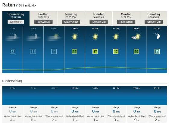 Detail-Aussichten ZH für Donnerstag, 28.Aug. 2014 |