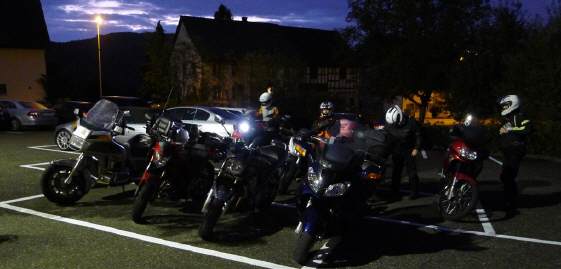 Einmal mehr stand unsere Ausfahrt unter gutem Zeichen: Es trafen 8 Teilnehmer um 19 Uhr an der Tramstrasse ein und durften bis auf ein paar Kilometer vor dem Ziel, dem Rest. Wyberg in Teufen am Irchel, die Ausfahrt bei trockenem Wetter und trockenen Strassen erleben. Ich übernahm die beiden L-Fahrer, Brigitte und Valentin, als Schlussfahrer meldete sich freiwillig Beat mit dem Grossroller. Der Weg führte uns über Wallisellen nach Dietlikon, wo inzwischen ein paar zusätzliche Schwellen auf der von mir gewählten Route eingebaut wurden. Dasselbe geschah in Brüttisellen, wo wir den Weg «durchs Feld» nach Wangen suchten. Über die ungeteerte Waldstrasse nach Tagelswangen erreichten wir via Hintertür Effretikon, inzwischen ebenfalls mit Schwellen und Tempo 30-Zonen eingepflastert. Dort fuhren wir über Bisikon nach Illnau (auch via Hintertür) und bogen in Richtung Kyburg ab: Agasul, First waren die nächsten Weiler, bevor wir die Strecke Ottikon-Kyburg über Billikon in umgekehrter Richtung fuhren. Dann ging es zurück Richtung Effretikon, Autobahn-Zubringer nach Winterberg-Brütten. Die Strecke nach dem Sonnenberg verliessen wir nach Eich, da sich vor uns ein paar bedrohlich dunkle Wolken bemerkbar machten. So fuhren wir über den Müliberg nach Oberembrach, eingangs Embrach fuhren wir für die L-Fahrer noch ein paar Kreuzungen mit Rechtsvortritt, bevor wir uns in Richtung Rorbas auf die Umfahrung von Embrach begaben. Eingangs Rorbas begann es zu tröpfeln, ausgangs Rorbas in Richtung Teufen war es dann schon leichter Regen. Wir erreichten noch fast trockenen Leibes den Parkplatz des «Wyberg» und wir waren noch nicht richtig abgestiegen, als der Lärm die Gruppe Arthurs ankündigte: Schon gesellten sie sich zu uns und wir nahmen gleichzeitig Platz in der heimeligen Gaststube. Meistens regnet es, wenn wir im Wyberg einkehren: Der Regen hat sich diemal an die Regel gehalten. |
