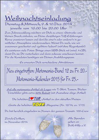mit Weihnachtseinladung als PDF [1'390 KB] -Download (Vor- und Rückseite: motomania-Karrikatur)