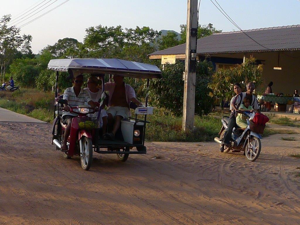 Unser Taxi-Chauffeur wartete am Dorfeingang und wir spazierten bis zur Hafen-Anlage am Ende des Dorfes. Von dort aus sollten wir dann wieder ablegen für nach Hause. Wir beobachteten die Einheimischen, die Kinder und die Touristen. Es gab einige davon, die wohl hier lebten wegen den kleinen Preisen - und sie führten sich auch so auf. Wir waren natürlich erstaunt, wer sich hier alles auf den Motorrollern tummelt: Wer die Füsse auf den Boden bringt, fährt, egal wie alt er/sie ist. Es ist nicht erstaunlich, dass Thailand in der Statistik punkto Zweiradtote auf 2.Stelle weltweit steht! |