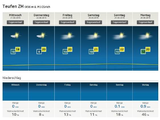 Züri-Wätter im Detail für Donnerstag 22.Sept. 2016 |