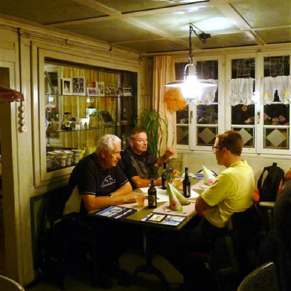 Bild unten: Renato und Hugo entschlossen sich nach der Ankunft für den direkten Heimweg, während wir übrigen die neuen Wirtsleute, Tochter und Mutter, testeten ... So viel sei verraten: Wir waren alle vom Essen begeistert! Wir werden bestimmt mit einer grösseren Meute nochmals vorbeischauen!