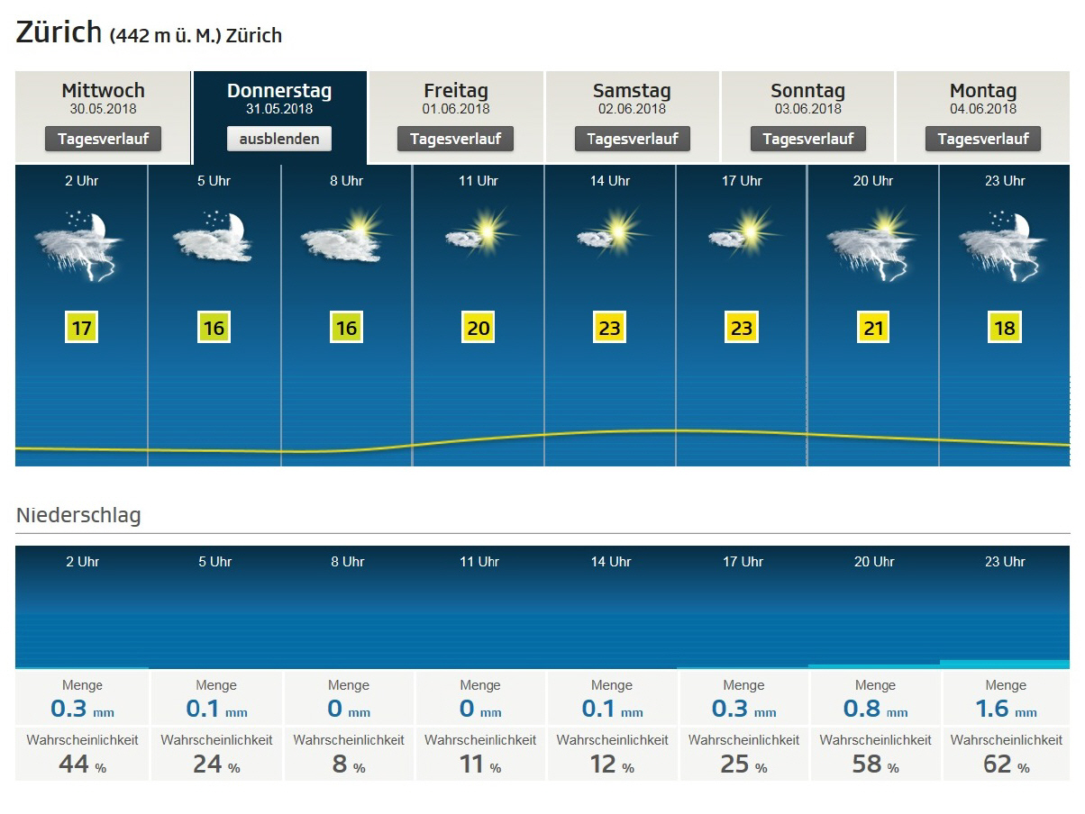 Züri-Wätter-Details für Donnerstag, 31.Mai 2018 |