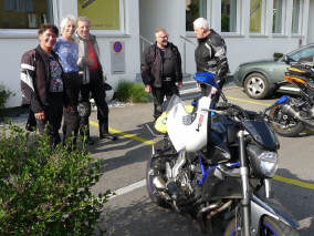 Auch dieses Mal waren es insgesamt 10 Teilnehmer zum Abendessen, da sich Urs gleich auf den Heimweg begab. Ich fuhr über die Kyburg in Richtung Winterthur, wo wir in Richtung Eschenberg abbogen. Leider verloren wir bei diesem Manöver «unseren Schwanz», den zweiten Teil der Gruppe, so dass der zuhinterst fahrende Tourguide Alain ohne etwas dazu zu tun, mit Daniel auf der BMW seine eigene Gruppe bekam. Sie fuhren über die Stadt, während wir in der Breite wieder auf die Strasse in Richtung Winterthur-Töss einbogen, von da dann über Sunnenbüel uns von der Seite Lufingen an den Gerlisberg heranpirschten. Kaum hatten wir parkiert, als auch schon Arthur mit dem Rest der Gruppe eintraf: Seine Gruppe hatten wir kurz vor Lufingen durch den Kreisel in Richtung Oberembrach fahren sehen. Schliesslich traf dann auch noch Alain am Ziel ein. |