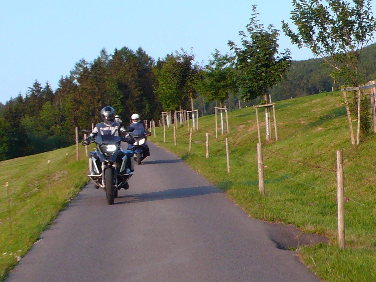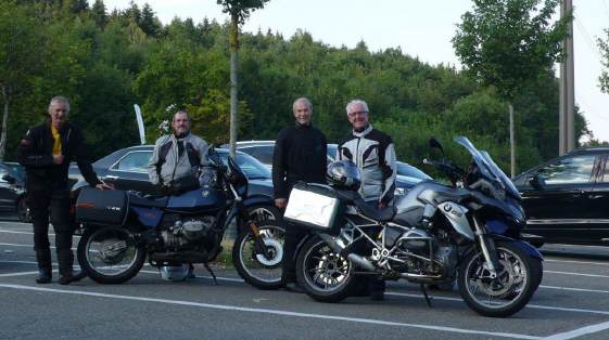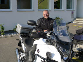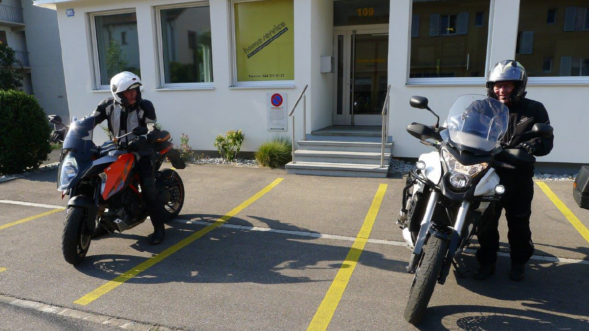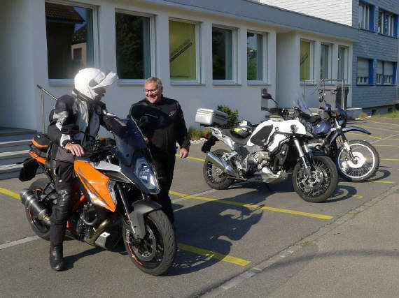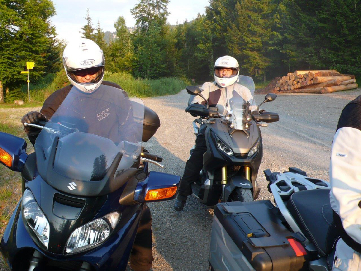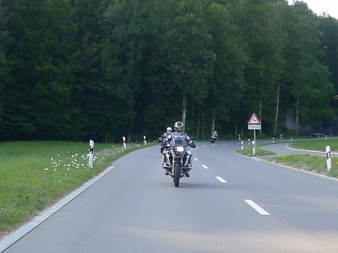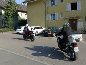 In der Waldegg warteten (v.l.n.r.) Alain, Beat und Hugo. Ich übernahm die Führung und direkt hinter mir fuhr Hugo mit seier 1200er-GS, dann folgte Beat auf dem 650er-Burgman-Roller und Alain auf seiner Cross-over 750er-Honda.