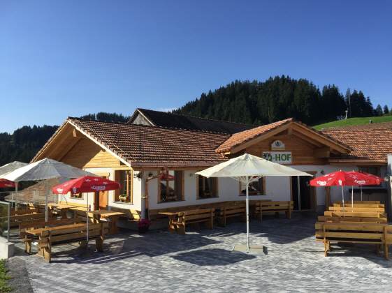 Da das Berggasthaus Mostelberg bereits um 17.00 Uhr schliesst, müssen wir auf das nur 50 Meter entfernt gelegene Bergbeizli «Mostlers Q-HOF» ausweichen. Ich bin sicher, dass wir dort genau so gastlich empfangen werden wie im grossen Restaurant nebenan. |