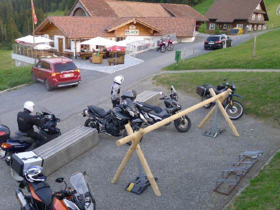 Unser Ausfahrts-Hit, mit der langen Anfahrt zum Ziel-Restaurant in luftiger Höhe oberhalb von Gommiswald, lockte eine grössere Anzahl TeilnehmerInnen an. Arthur startete um 18.00 Uhr, ich startete dann pünktlich um 19.00 Uhr zu dritt: Vincent mit der grossen 6-Zylinder-GoldWing-Chopper und Luca auf meiner Fahrschultransalp. Als wir am Ziel eintrafen, war der Parkplatz ziemlich belegt. Die wetterfesten Teilnehmer installierten sich auf der Terrasse, wir aber zogen es vor, im Restaurant zu essen. Ein toller Sonnenuntergang belohnte den weiten Ausflug - eigentlich auch wie immer! Mehr dazu hier