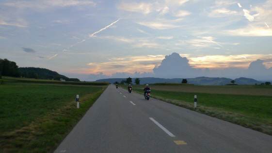 Am letzten Donnerstag herrschte um 18 Uhr Grossandrang bei nur einem Tourguide: Insgesamt 11 Personen starteten, die grosse Gruppe erreichte nicht ohne Zwischenfälle (der vordere ist verantwortlich für den nächsten Fahrer!) das Ziel im Raten. Ich startete zusammen mit Renato um 19 Uhr mit zwei weiteren Teilnehmern. In Rüschlikon starteten sie zu dritt, es war ein herrlicher Sommerabend mit einem netten Ausklang im gastlichen Restaurant auf dem Raten. Mehr dazu hier