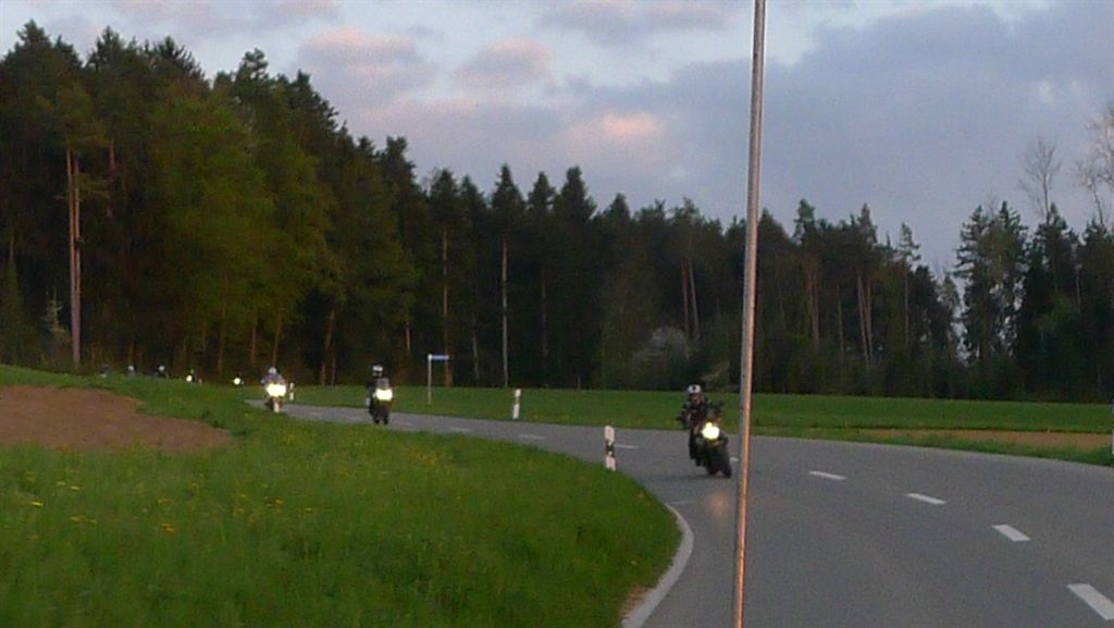 Wie nicht anders zu erwarten, trafen ganz viele Teilnehmer an der Tramstrasse um 19 Uhr ein. Da Dominik aufgehalten wurden, mussten wir die Teilnehmenden auf Arthur und mich verteilen. Nach der Verteilung trafen noch René und Urs ein, die sich meiner Gruppe anschlossen. So startete ich ausnahmsweise mit einem Tross von 9 Maschinen, während es bei Arthur nur sieben waren.