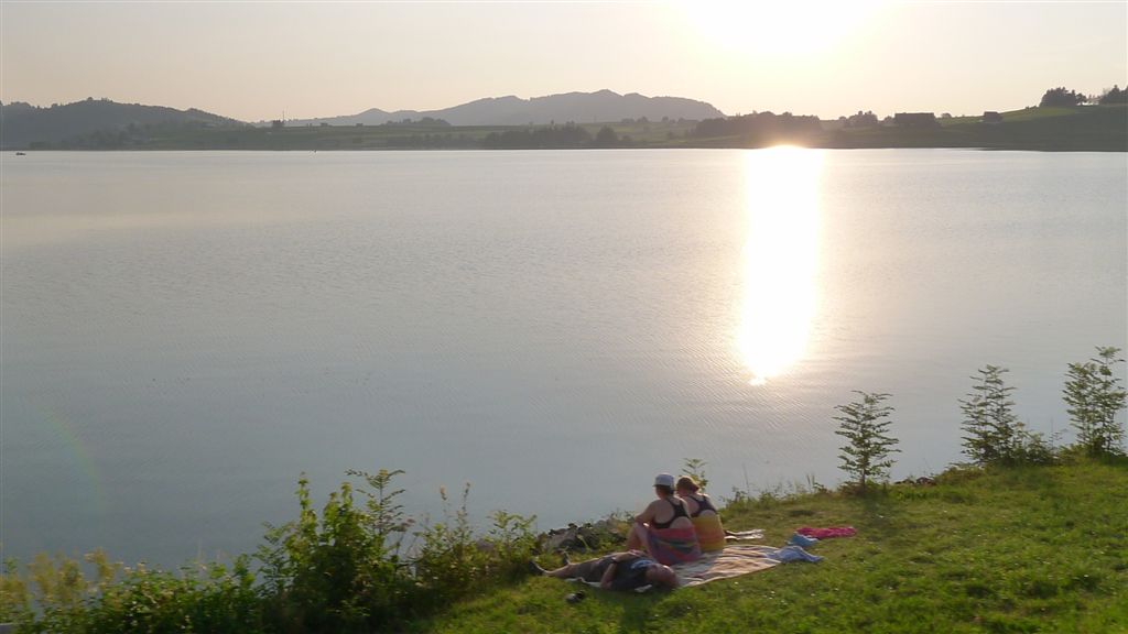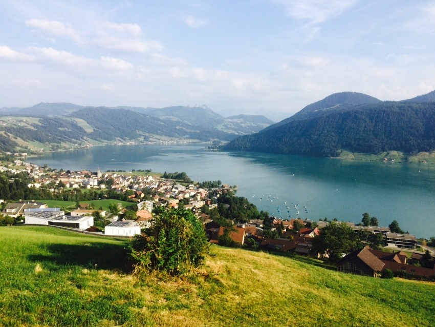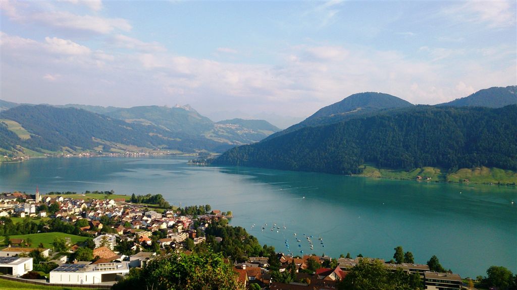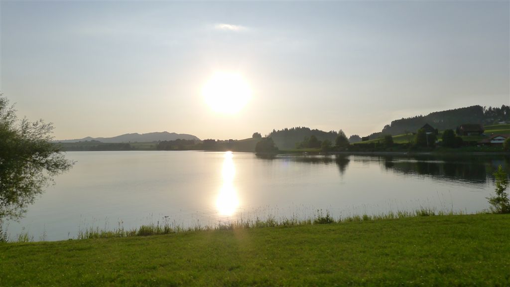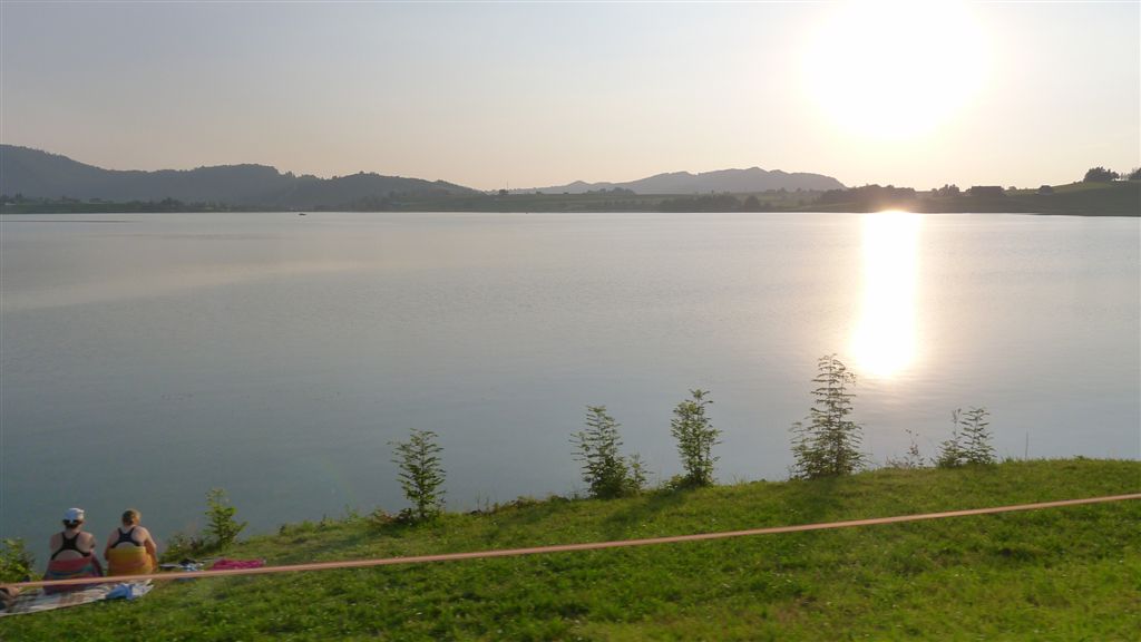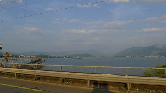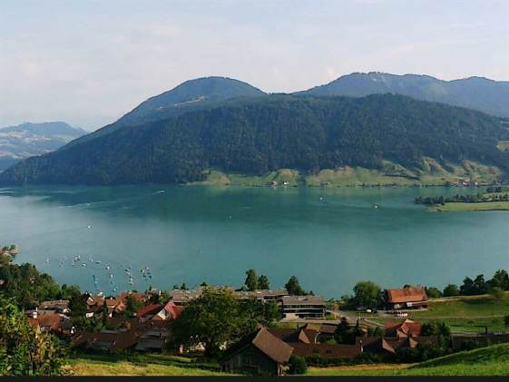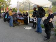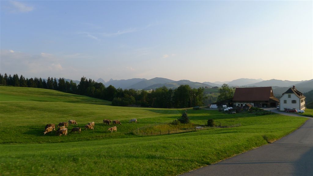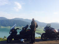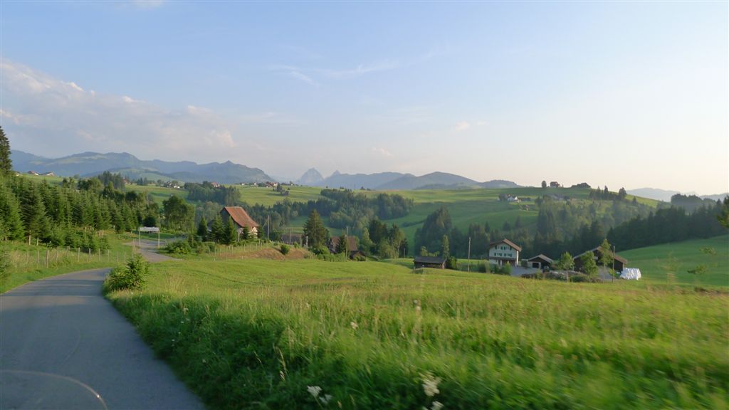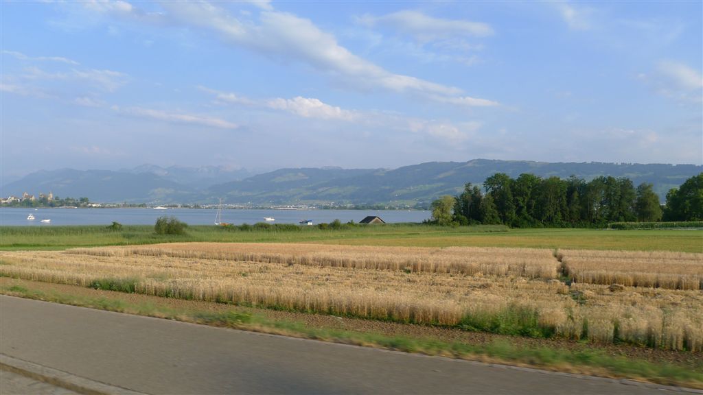 Über Hombrechtikon, Freienbach erreichten wir Rapperswil. Es ist immer wieder ein Erlebnis, wenn man dem See entlang fährt, hinten die Kulisse mit dem Schloss Rapperswil, dahinter die zusammenhängende Alpenkette! Der Seedamm war wegen der Ferienzeit leicht zu passieren. Wir waren trotz Umwegen zeitlich so gut dran, dass wir noch den Etzel, die Teufelsbrücke und entlang dem Sihlsee fahren konnten, um die Sattelegg von Süden her anzufahren. Schliesslich waren wir sogar noch zu früh am Ziel, schon vor halb 9 Uhr!