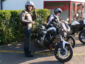 09.07.2015 Geschafft! Petr hat nun auch seine Führerprüfung der Kat. A unbeschr. hinter sich. Erst versuchte er es auf Fahrschulmaschinen, seit letztem Sommer dann auf der BMW F800 ST. Das Bild entstand im (verregneten) Kurventechnik-Kurs vom 27.Juli 2014. Wir gratulieren!
