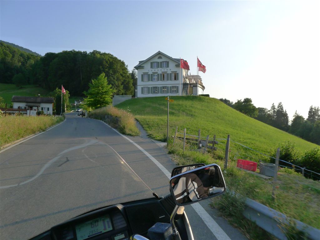 Nach dem Seedamm bogen wir in Pfäffikon SZ ab in Richtung «Etzel-Pass»: Vor uns türmte sich das Ausflugsrestaurant «Luegeten» auf, welches jeweils als Start für die Schlussfahrt gilt.