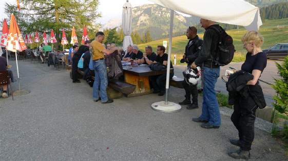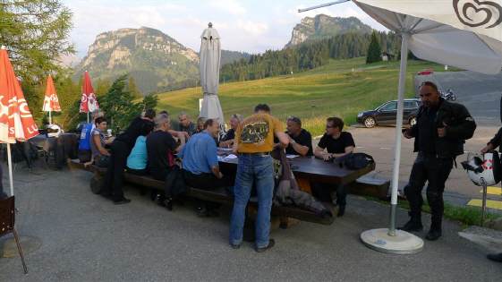 Wiederum wurde zu zwei Zeiten gestartet: Arthur und Alain leiteten die Gruppen um 18 Uhr, ich und Dominik ab 19 Uhr. Da nicht allzu viel Zeit war, fuhr ich ohne riesige Umwege über Hittnau, wo uns Dominik entgegen kam! Am Ziel angekommen, musste Arthur und ich gleich umdrehen, weil wir bereits um 6 Uhr früh in der Waldegg zur Stella-Tour starten würden. Es waren rund ein Dutzend Leute, die schliesslich das Essen einnahmen.