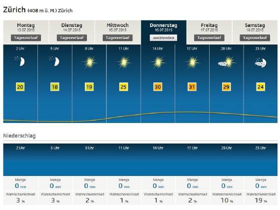 Detail-Aussichten ZH für Donnerstag, 23.Juli 2015 |