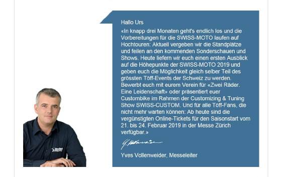 SWISS-MOTO-Rundbrief an meine Kunden im Febr. 2019 |