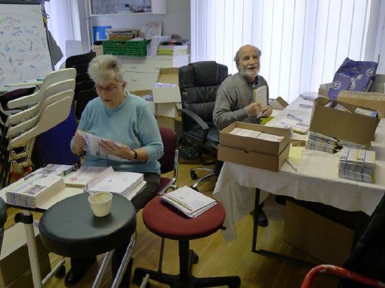 Obwohl ich in diesem Frühjahr viel früher dran war, wurde es am Schluss doch noch ein Wettlauf gegen die Zeit: Meinem (zugegeben kurzfristigen) Aufruf folgte eigentlich nur Urs: Er ist immer da, wenn man ihn braucht. Diesmal hatte es Karin erwischt mit «krank» ... Stopp, da war noch Adam, der mir die Füllstrassen half einrichten, bevor es überhaupt losging. So blieb fast alles an Milly und mir hängen: Eine neue Fahrschülerin, die wohl unsere Situation erkannte, kam mit ihrem Freund und sie halfen am Samstag auch 2x 2 1/2 Stunden. Die Briefe gingen am Montag um 16.30 Uhr per B langsam weg, die Post lässt sich 5-6 (Arbeits)Tage Zeit. Sie dürften also frühestens Ende der Woche, wohl eher anfangs der nächsten Woche bei den Kunden eintreffen. |